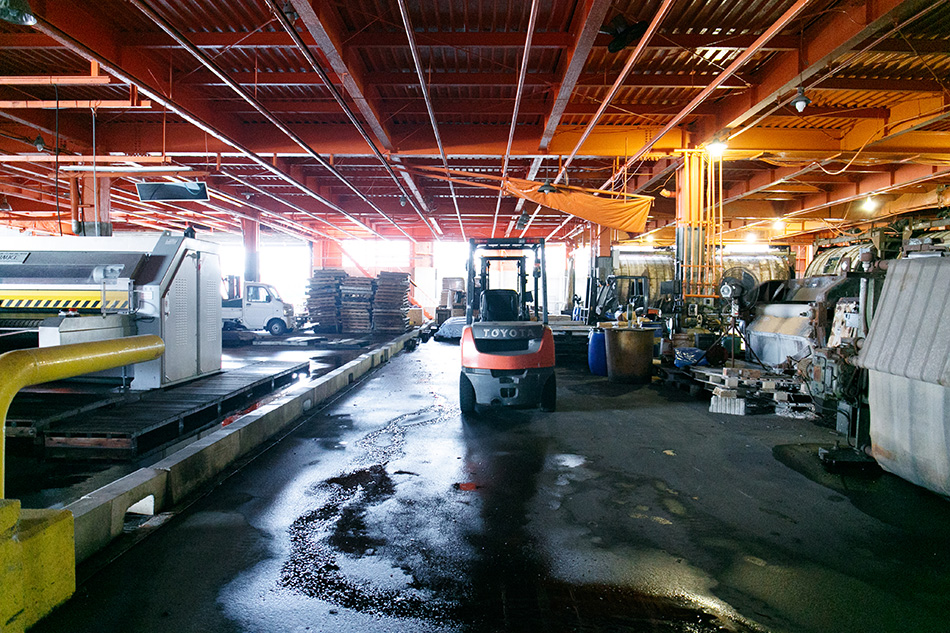 ロールでワックスをかける工程。ここでワックスがきれいに入るかどうかが、非常に重要なのだそう。