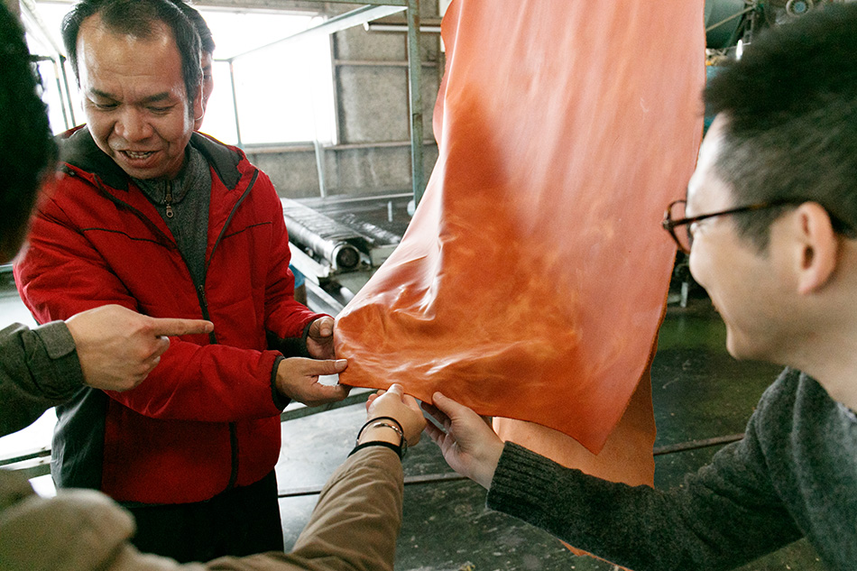 感覚が頼りだから、この3人でイメージを共有していないと、この皮革の微調整は出来ないんです。