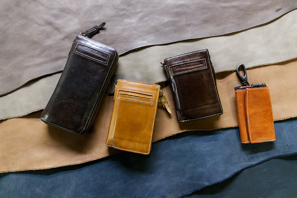 使い込まれ、絶妙な経年変化を見せるキュリオスシリーズの財布・キーケース。