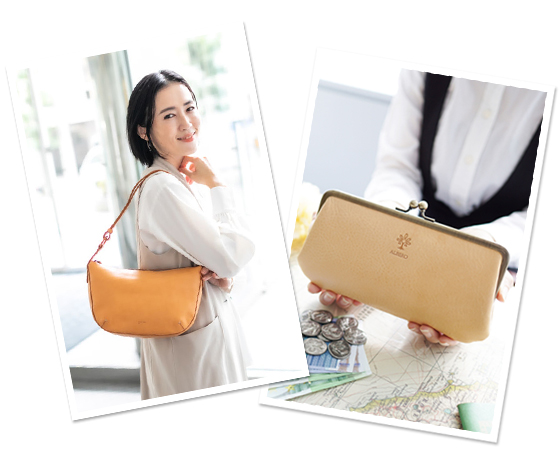 この、まるで呼吸をし生きているかのような、革の表情の変化― エイジング(経年変化) こそが、革製品のもつ最大の魅力ともいえます。まるで生きているかのように、使う人の時を刻み、成長していく革のバッグや小物たち。使い込むほどに愛着も深まっていきます。