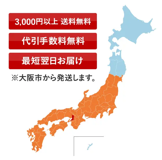 関東・甲信越・北陸・東海・近畿・中国・四国地方・九州(沖縄を除く)への配送は最短で翌日にお届けが可能でございます。(最短翌日配送 対応・保証)
